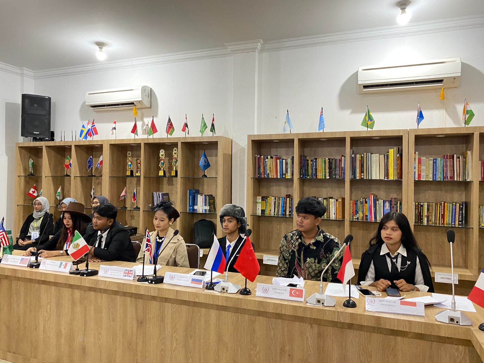Setelah pembukaan, kegiatan dilanjutkan dengan sesi utama, yaitu simulasi sidang diplomatik, di mana para mahasiswa berperan sebagai delegasi dari berbagai negara anggota Perserikatan Bangsa-Bangsa (PBB). Dalam simulasi ini, peserta melakukan negosiasi dan diplomasi multilateral membahas isu “The Impact of Trade Wars on Global Economic Stability”. Mahasiswa dibagi ke dalam beberapa blok negara dengan kepentingan strategis yang berbeda, dan dituntut untuk membangun aliansi, menyusun resolusi, serta mempertahankan posisi negara masing-masing secara argumentatif dan diplomatik.
