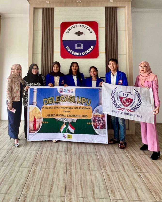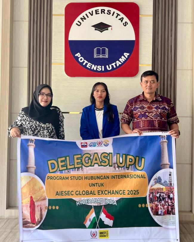 Program Studi Hubungan Internasional Universitas Potensi Utama (UPU) kembali menunjukkan komitmennya dalam membentuk lulusan yang siap bersaing secara global. Salah satu langkah nyata tersebut diwujudkan melalui partisipasi dalam program AIESEC Global Exchange 2025 yang berlangsung di Hyderabad, India. Pada tahun ini, UPU secara resmi mengirimkan perwakilannya sebagai delegasi atas nama Jinati Stepani Siahaan yang merupakan mahasiswa Prodi Hubungan Internasional untuk mengikuti program internasional yang berfokus pada pengembangan kepemimpinan pemuda, kerja sukarela, dan kolaborasi lintas budaya. "Kegiatan AIESEC Global Exchange ini berlangsung mulai dari 13 Juli 2025 sampai 25 Agustus 2025."